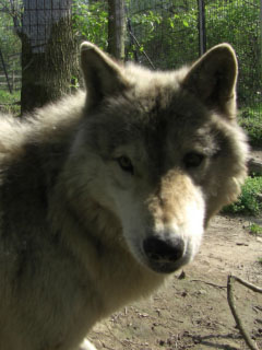 やさしい顔でこちらにやってくるのがメス狼。