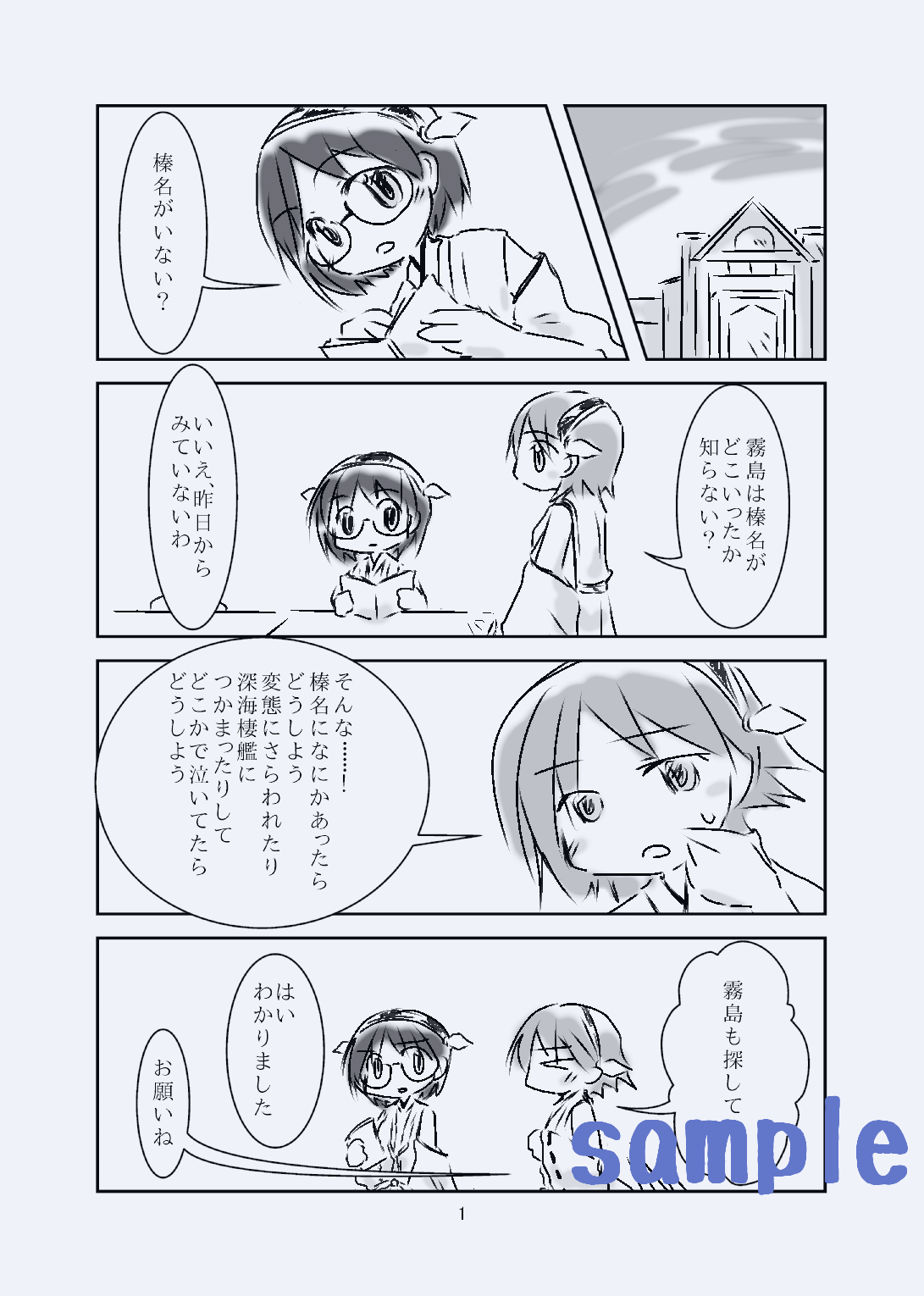 艦これの榛霧のお話です。金剛姉妹が榛名を探すお話です。スペースはC94金曜日東リ24b、サークル名は[あかじゅう]です。よろしくお願いします!